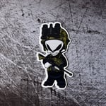 High quality 2.2" x 4" die-cut vinyl sticker. Laminated with a UV protective finish for outdoor use. Perfect for skateboards, ammo cans, Pelican cases, car windows, or water bottles.