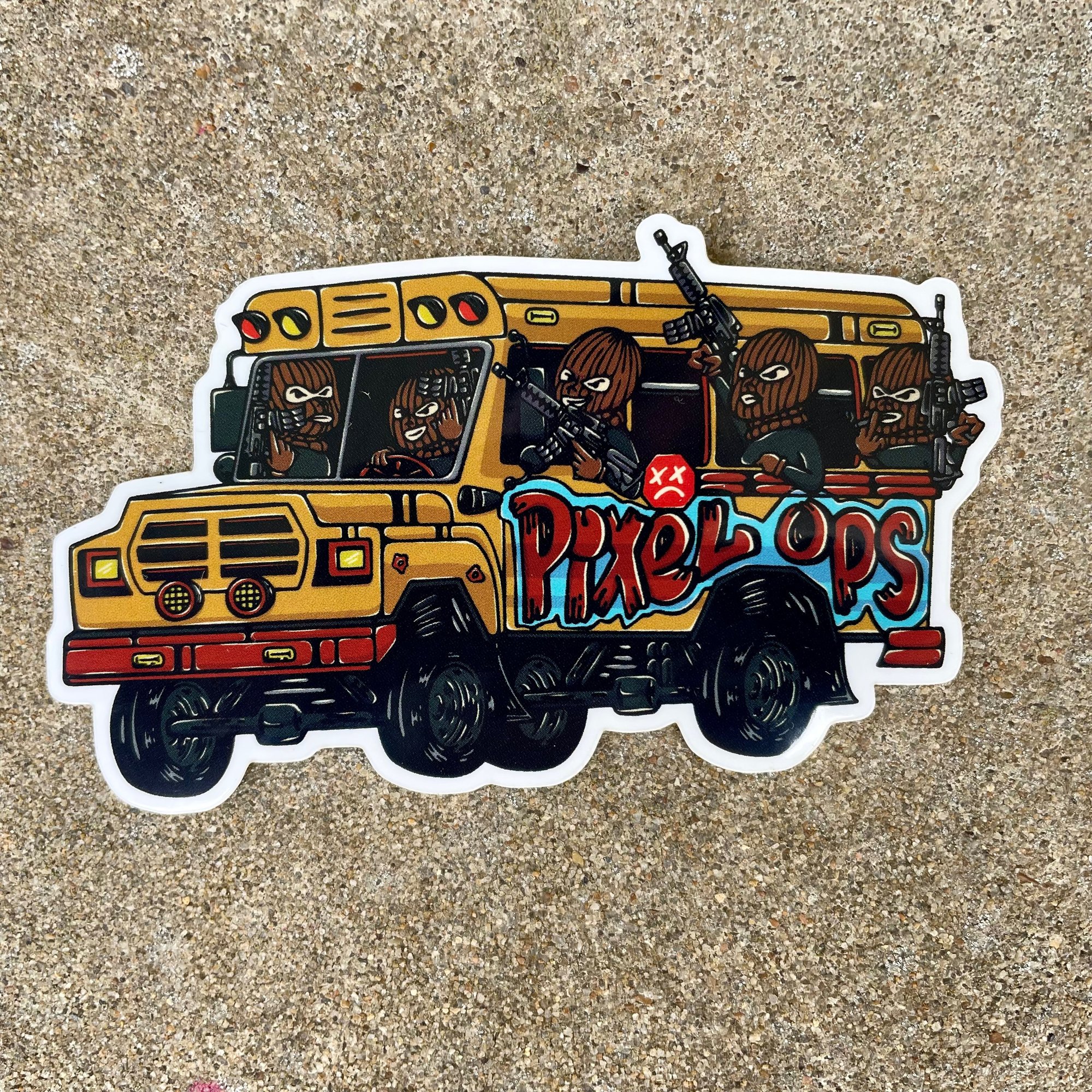 High quality 4" x 2.3" die-cut vinyl sticker. Laminated with a UV protective finish for outdoor use. Perfect for skateboards, ammo cans, Pelican cases, car windows, or water bottles.